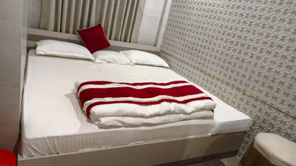 Morning: Tea/Coffee Biscuits, Sandwich, Sweet, Bisleri, Tea.